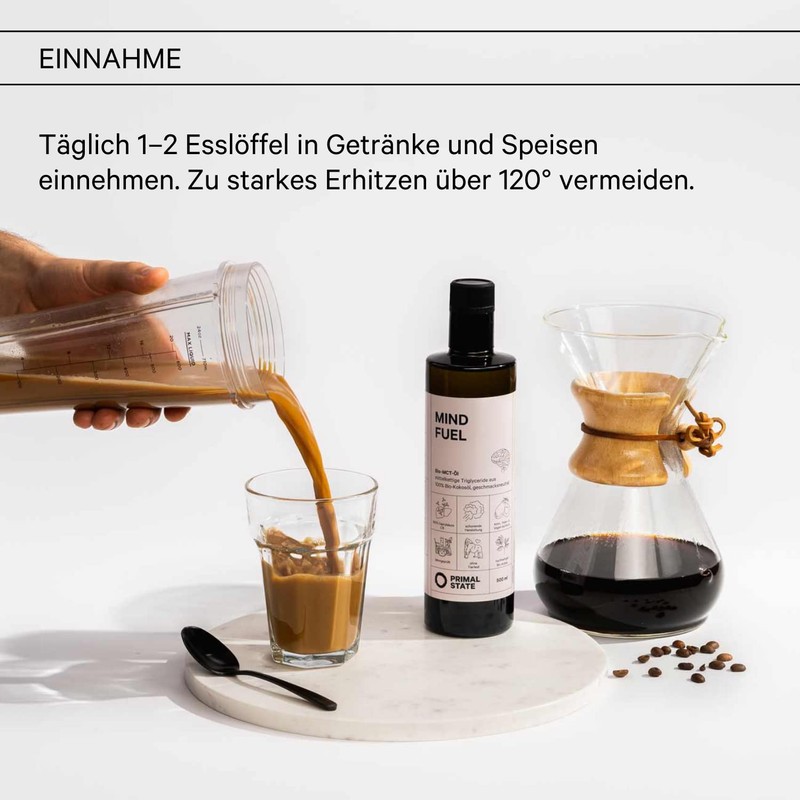 - KINDERLEICHTE DOSIERUNG – Das Primal Bio C8 MCT Oil ist dank des Ausgießers super einfach anzuwenden. So geht auch garantiert nichts daneben und Du kannst Deinen Shake, Kaffee oder Müsli einfach genießen.