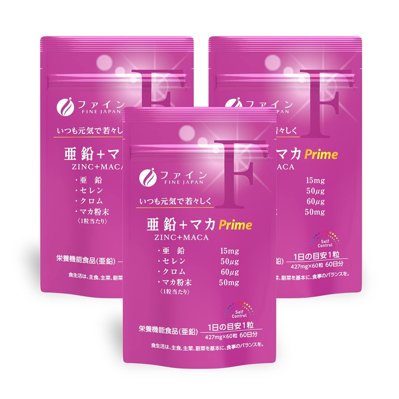 ファイン 亜鉛 + マカ Prime マカ粉末 セレン酵母 クロム酵母 グルコン酸亜鉛 国内生産 60日分 (1日1粒 /60粒入) × 3個セット