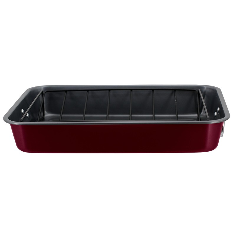 Prime Cuisine Roasting Pan with Rack – 15.75" Turkey Roaster Pan with V-Rack, Nonstick Oven Pan for Cooking, Baking & Roasting – Sturdy Handles for Easy Transport, Easy Cleanup, Burgundy