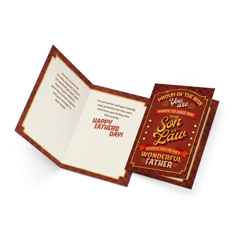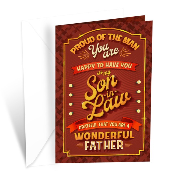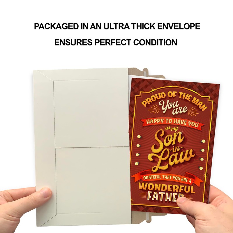 Prime Greetings Son In Law Father's Day Card, Made in America, Thick Card Stock with Premium Envelope Packaged in a Reusable Presentation Mailer, Eco-Friendly, 5in x 7.75in