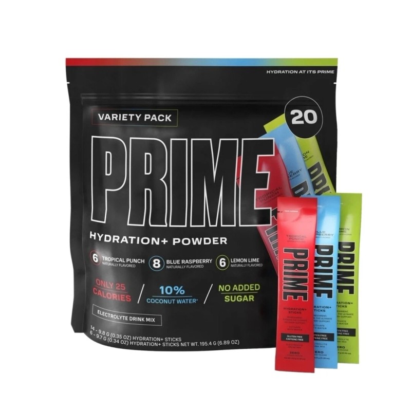 Prime Hydration+ Sticks are a water soluble, powdered version of Prime’s flagship beverage, Prime Hydration.