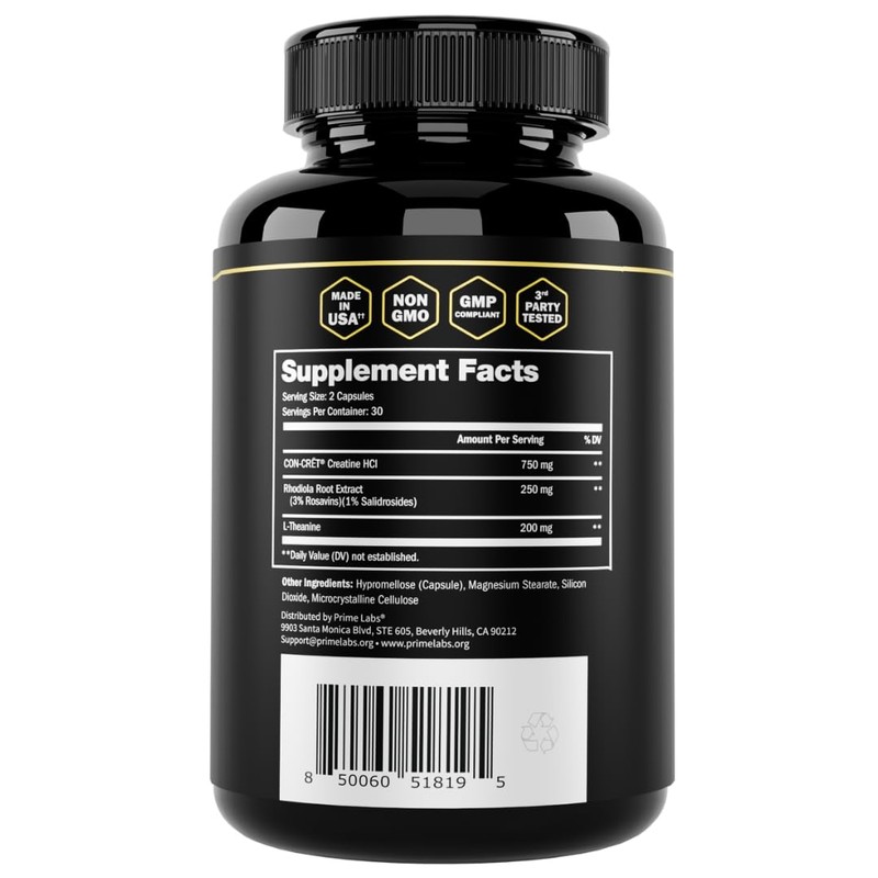 Prime Labs Prime Labs Concrete Creatine HCl Capsules - with CON-CRET? Rhodiola Root Extract, & L-Theanine - Muscle Support, Endurance, Cognitive Function - for Men & Women - 60 Count