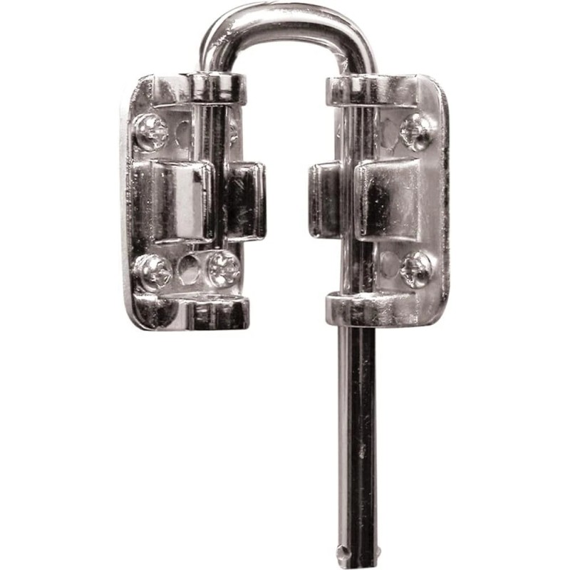 - DURABLE CONSTRUCTION – This door loop lock has a hardened steel locking bar with diecast constructed mounting plate and keeper, with a nickel plated finish.