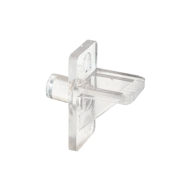These shelf pegs are constructed from clear plastic. They feature a 1/4in. diameter peg and support a maximum safe load of 5 lb. This style peg is used by many furniture manufacturers to support cabinet shelves.