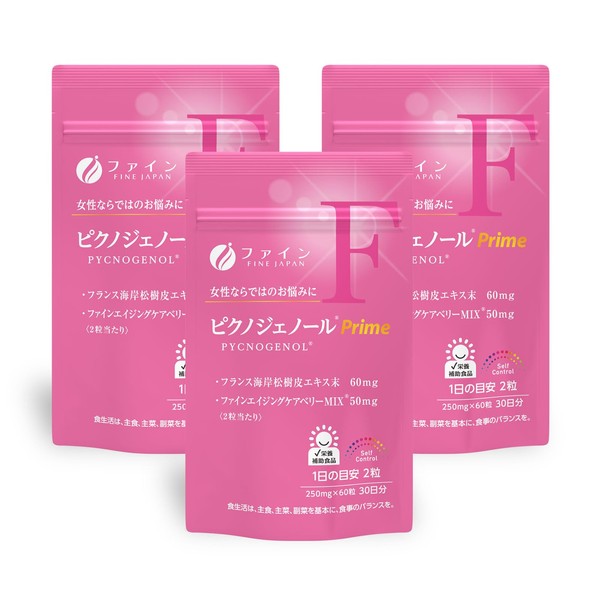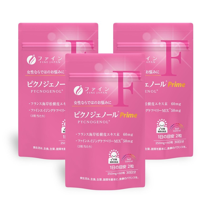 ファイン ピクノジェノール Prime フランス海岸松樹皮エキス末 ファインエイジングケアベリーMIX 国内生産 30日分 (1日2粒/60粒入)×3個
