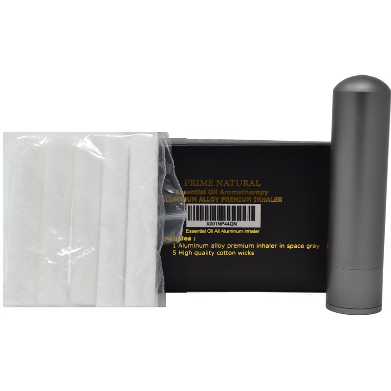 Prime Natural Essential Oil Aluminum Alloy Premium Blank Nasal Inhaler - Refillable Aluminum Empty Metal Inhaler - Space Gray Color - Comes with 5 Cotton Wicks - for Aromatherapy