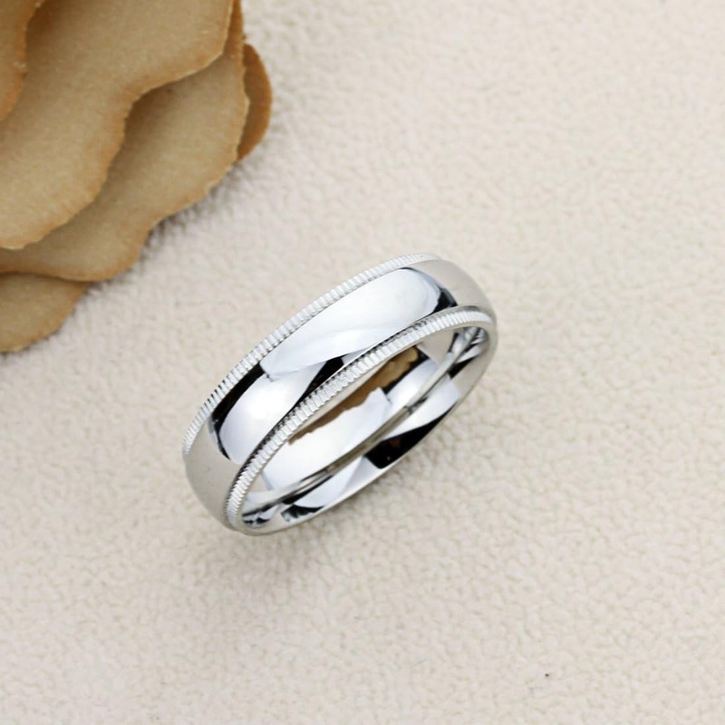 Prime Pristine 4mm 6mm Stainless Steel Mens Womens Rings Milgrain Edges Domed Classy Comfort Fit Wedding Bands SZ: 10.5