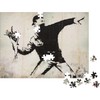 - A Captivating Piece of Urban Art History This puzzle features Banksy’s iconic "Flame Thrower" artwork, which originally appeared as a large format stencil on Jerusalem’s West Bank wall, a barrier separating Palestine from Israel. The image depicts a young protester in the act of hurling what appears to be a grenade, but is instead a bouquet of flowers. This powerful juxtaposition, typical of Banksy's work, captures a paradox of emotions, context, and symbolism that is both jarring and deeply thought-provoking. The artwork serves as a poignant reminder that peace and beauty can be potent weapons against corruption and conflict.