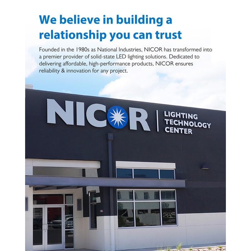 - Lighting You Can Trust: At NICOR, we’re always looking for ways to make your light better. When you choose a NICOR product, you can rest assured you’re getting a product that has been tested to the highest standards available. Our commitment is to be a leader of reliability, innovation, and excellence because we understand just how important you are.