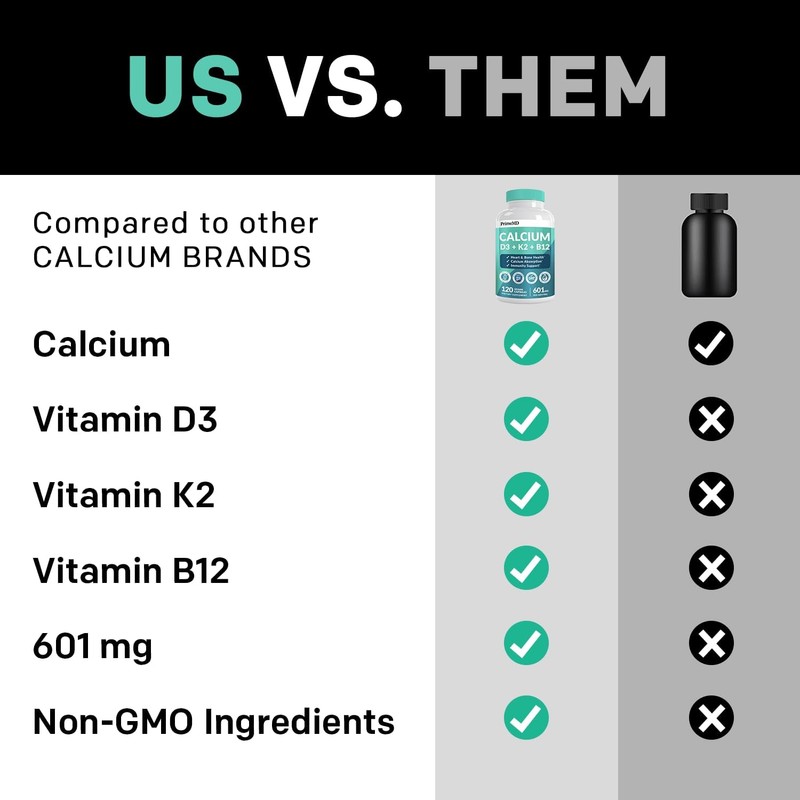 PrimeMD 4-in-1 Calclum Supplements for Women and Men - Calcium 600mg with Vitamin D3 K2 5000 IU Supplement for Heart, Bone & Body Defenses - Gluten-Free, Vegan-Friendly (240 ct)