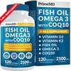 PrimeMD 5-in-1 Fish Oil Omega 3 Fatty Supplements (2100mg) - Omega 3 Fish Oil with Vitamins D3 K2 and CoQ10 - Lemon Flavored (120 softgels)