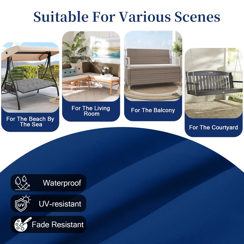 - Durable Waterproof Fabrics: This outdoor swing cushion is made of high-quality waterproof fabric, which is comfortable and has excellent durability. The fabric has been treated to prevent water penetration and keep you dry even in humid environments