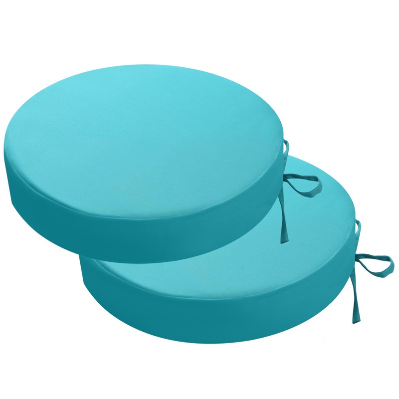 PRIMEPATIO Round Outdoor Chair Cushions, Set of 2, Waterproof Outdoor Seat Cushions, Colourfast Patio Chair Cushions with Ties, Patio Furniture, 35 x 35 cm, Lake Blue