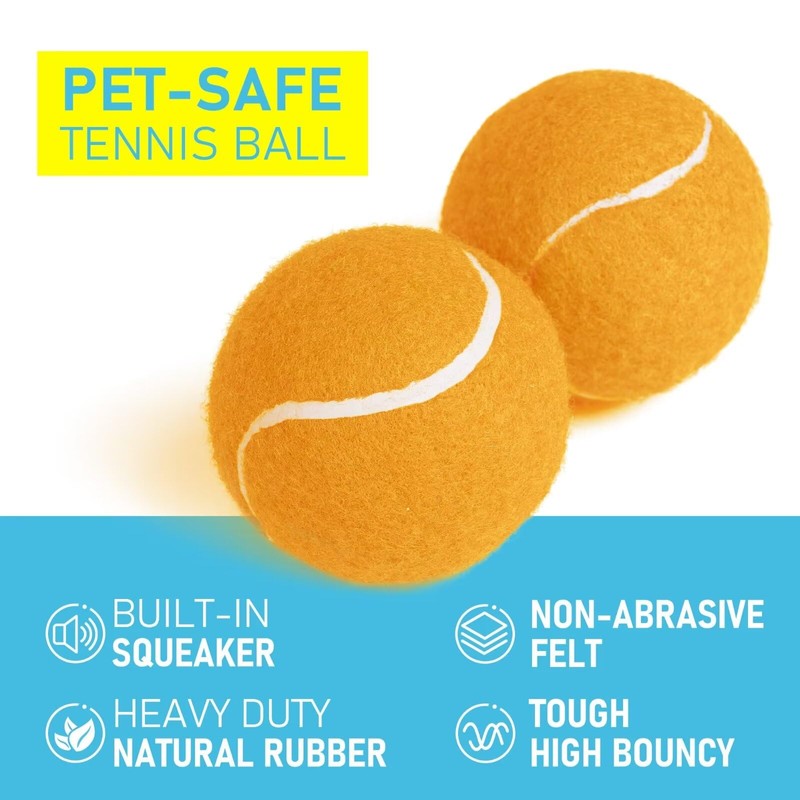 - SAFE MATERIAL & DESIGN: Our Squeaky Pet Tennis Balls are made from premium natural rubber with durable well-bonded non-abrasive felt, Lead-Free & BPA-Free, safe for your pets. The tennis balls equips with fully covered invisible squeakers, will not pop out, which avoid choking hazard for your pets