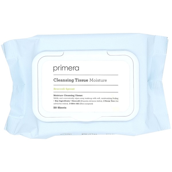 Primera Moisture Cleansing Tissues (50 sheets) provide clean and gentle cleansing. / 프리메라 모이스처 클렌징 티슈 50매 깔끔하고 부드러운 클렌징을 선사