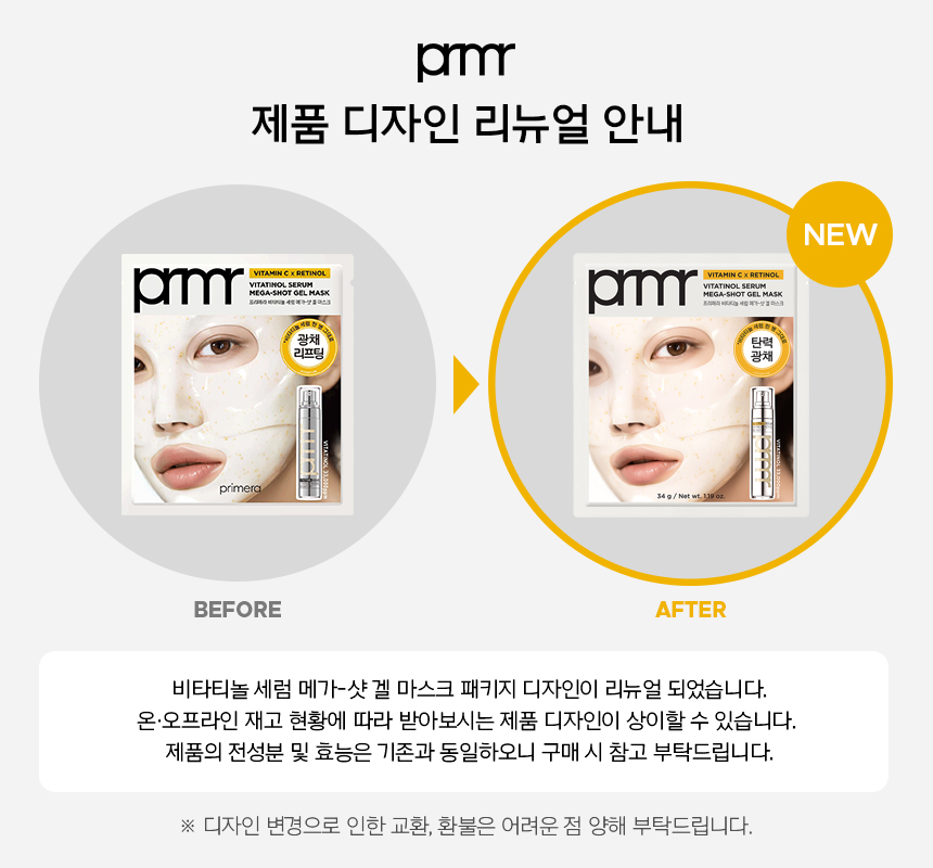 프리메라 비타티놀 메가샷 세럼 마스크 5매