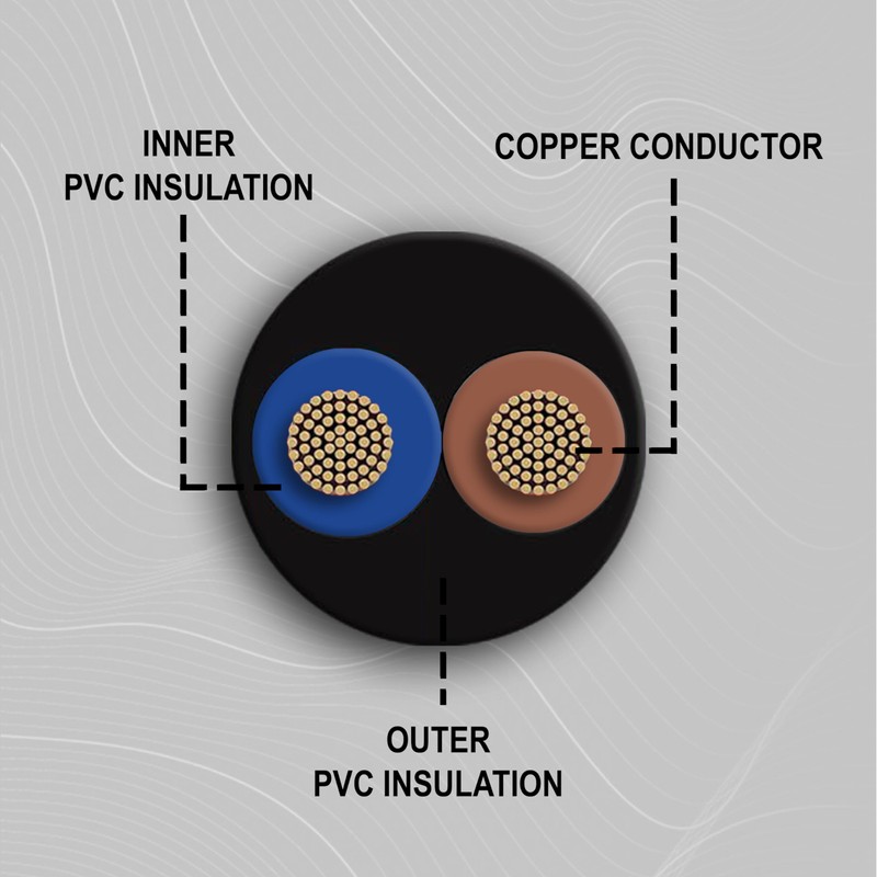 - High-Quality Construction: The 2Core Cable features a premium build with high-quality pure copper wire, ensuring small internal resistance, excellent conductivity, and anti-oxidation properties. The PVC insulation material of the bush adds flexibility and ease of bending, making it a durable and reliable choice.