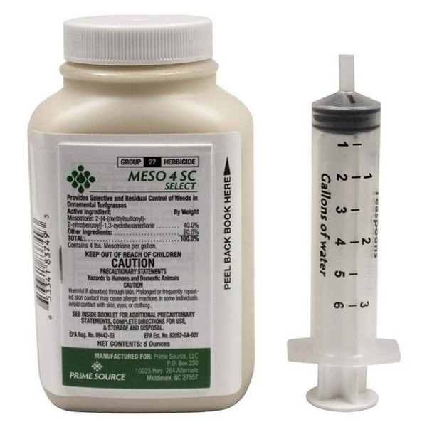 Meso 4SC Select is a herbicide that can be used for both pre and post- emergence control of more than 45 broadleaf weeds and grasses in turfgrass. Classified as a group 27 herbicide, Meso 4SC Select inhibits photosynthesis in susceptible plants and is absorbed systemically through leaves, roots and shoots. Can be effectively used for weed control prior to and when seeding of specific types of turfgrasses.
