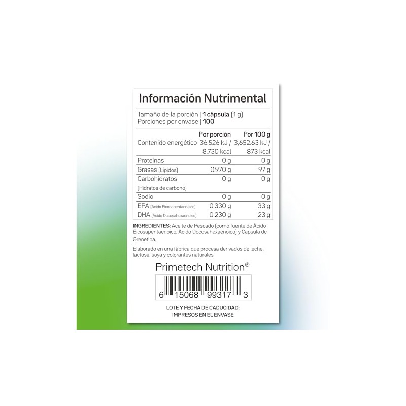 PRIMETECH NUTRITION - Primetech OMEGA 3 de aceite de pescado, 100 cáps aporta 330 mg epa y 230 dha, ácidos grasos de alta pureza y calidad que el cuerpo necesita para diversas funciones importantes de la salud humana. ✅ Diseño innovador que supera las expectativas. Materiales de alta gama y acabados premium. 🎯 Producto más buscado del mes. Ideal para quienes buscan lo mejor en calidad y estilo. Producto auténtico con satisfacción total asegurada. ¡No te quedes sin el tuyo y aprovecha esta oportunidad única!