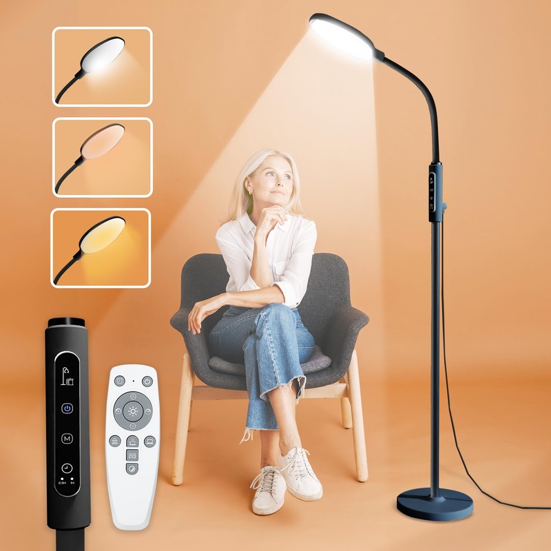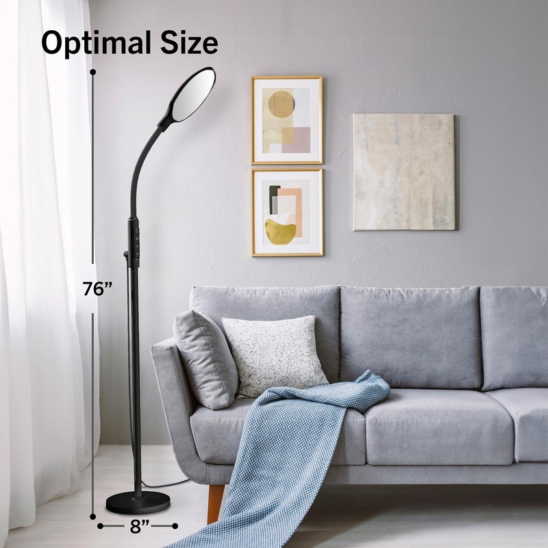 PRIMETEK Happy Lamp10000 Lux Mood Lamp, Dual Control Remote,Touch Screen Sad Lamp, Adjustable LED Floor Lamp, UV-Free Sun Light, 5 Color Temperatures 10 Brightness Levels (Black)
