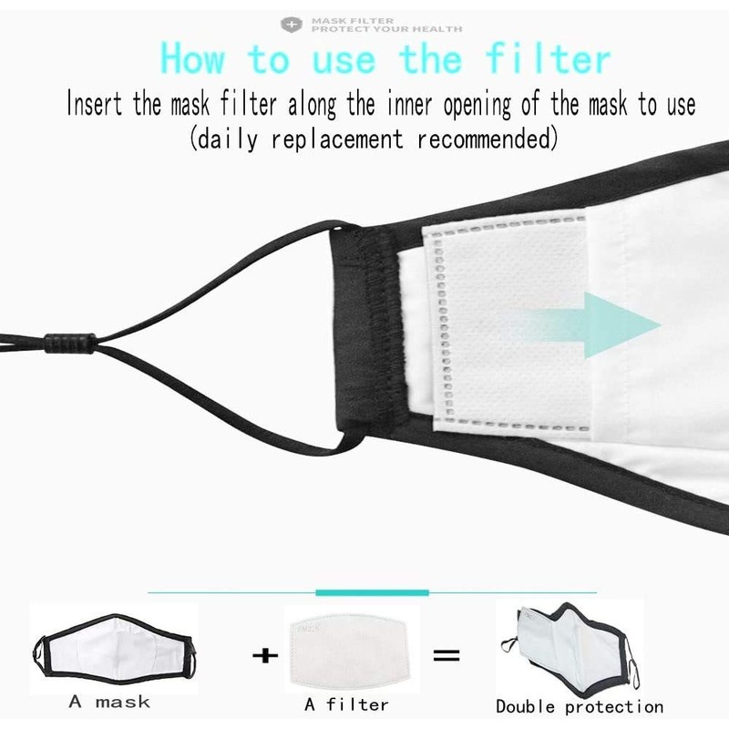 - 【5 FILTERS INCLUDED】The disposable air filter replacements contains efficient activated carbon, effectively prevents dust from entering your mouth and face, but allowing you to breathe normally wearing our washable face mask. ---------Resealable packaging contains Black reusable face mask + 5 filters