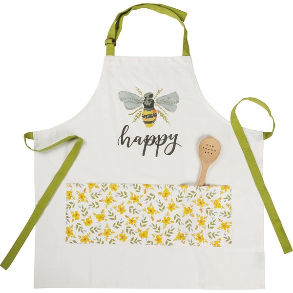 Primitives by Kathy Bee Happy Bee Themed Apron, White, One Size Fits Most
