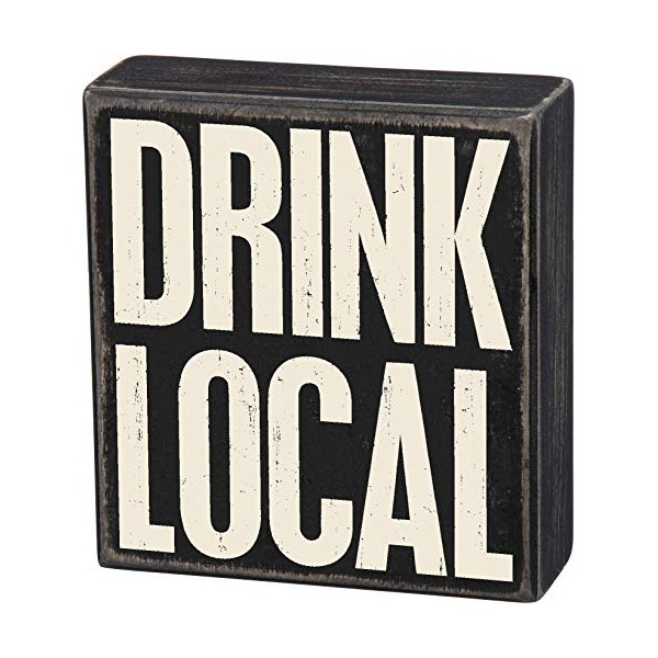 Black and white wooden box sign featuring a distressed inch Drink Local" sentiment. Measures 5 x 5.5-Inches. Easy to hang as a gallery wall accent or can free-stand alone on a shelf or mantel. stitching, and fabrics. In 1997, Kathy made her first inch primitive candle box" by hand, taking care into each detail from the sanded edges to the type of ribbon tied on the wire handles, each was a work of passion. As Primitives by Kathy grows, the company works to give back, starting with an initial relationship with goodwill services and expanding into several more charitable causes held both by the company and those the company supports on behalf of their employees. They are constantly inspired by the people, places and things around us. Kathy travels the world to pull inspiration first hand from cultures around the globe. Look for all of Primitives by Kathy for inspirational, fun, sarcastic, and heart-warming gifts and home decor. You'll want to have one for yourself and another for someone you care about.