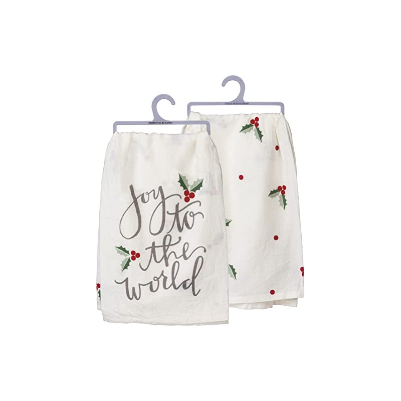 Primitives by Kathy Decorative Kitchen Towel - Joy to The World Hand Illustrated Sentiment with Festive Holly All Over Design