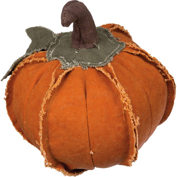 A small orange canvas stuffed pumpkin featuring frayed accents and leaf detail for a charming seasonal home decor accent. Measures 6. 5-inches in diameter and stands 7-inches tall. CAREFULLY BUY ONLY FROM or trusted partners to authentic Primitives By Kathy gifts and decor with premium quality printing, stitching, and fabrics. True success for Kathy is giving back. In 2018 we celebrated the official formation of Kathy’s Circle of Friends as a 501c non- profit organization, providing social opportunities through themed events for adults with varying levels of abilities – run by our employees who volunteer their time. We also partnered with the Friendship Heart Gallery to create a collection of beautiful artwork created by the artists at the gallery with autism and disabilities as a way to contribute to the success of the gallery and showcase the incredible work by the artists. These partnerships have truly illustrated how Primitives by Kathy combines a passion for creativity with a culture of caring.