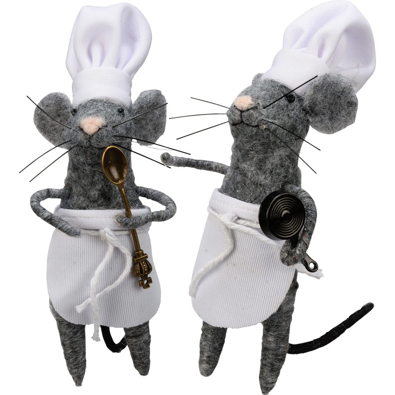 - SET OF 2: Includes a mouse holding a frying pan and the other holding a large spoon