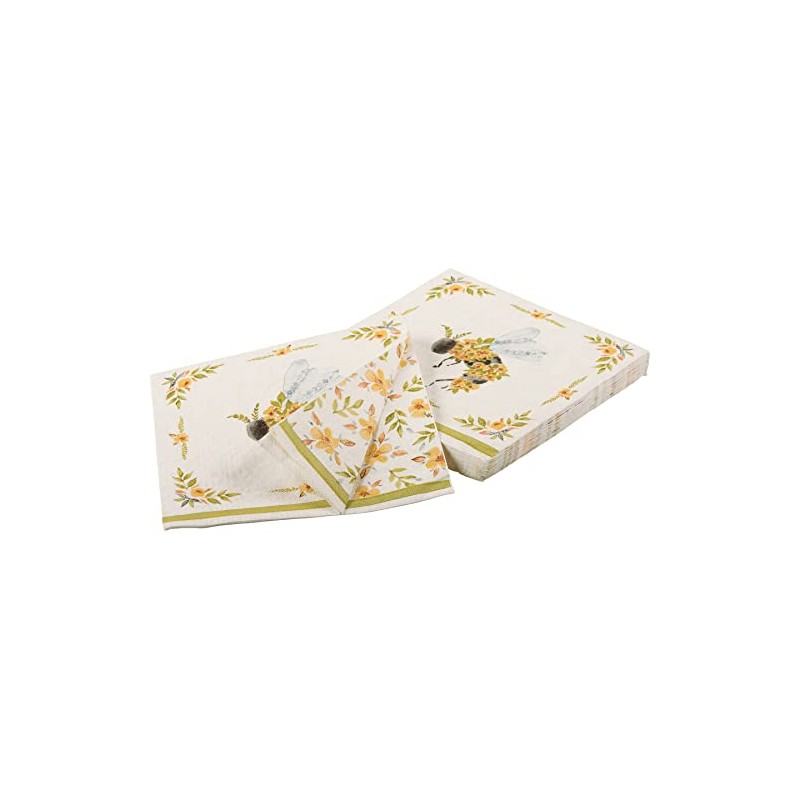 • WATERCOLOR ART: Napkins feature watercolor bee and floral design.