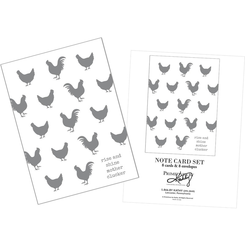 Primitives by Kathy Set of 8 Rooster & Hen Rise and Shine Mother Clucker Notecards with Envelopes