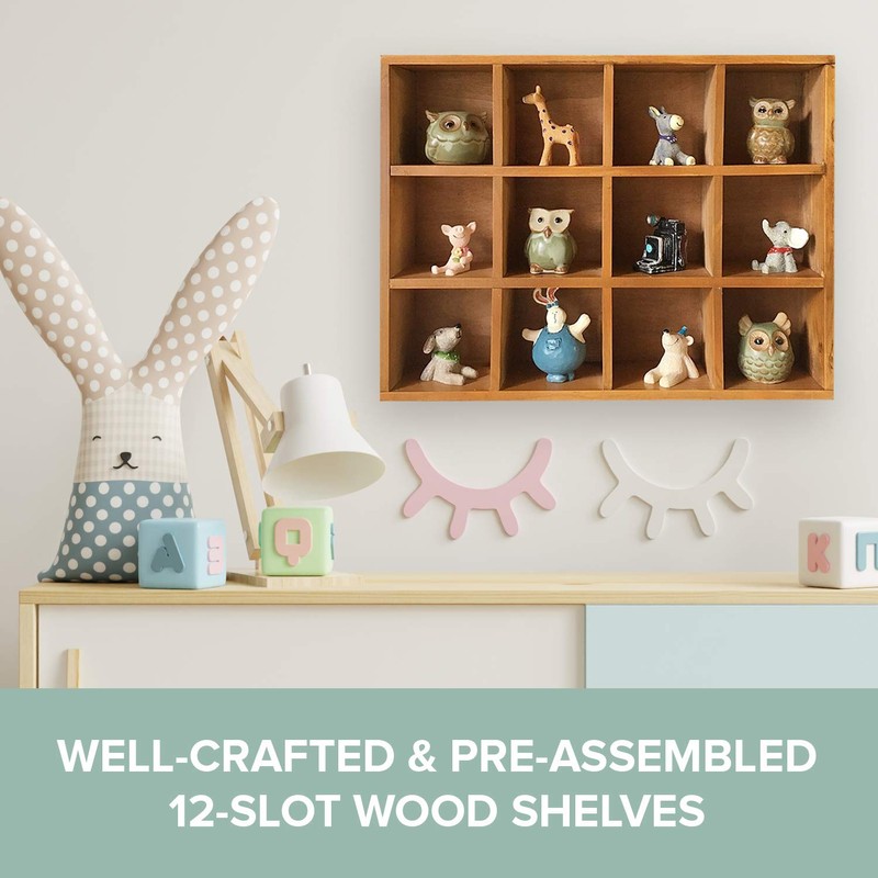 - WELL-CRAFTED & PRE-ASSEMBLED WOOD SHELVES: Providing you with 12 ample-sized display slots to organize your kitchen decor, your kids' cool stuff, your office decor, or your personal desk decor, it should go without saying that this Classic Cube Display Shelf is as sturdy and as durable as you expect it to be. Without giving you the hassle of assembling it yourself, also know that this wood cabinet will last for years