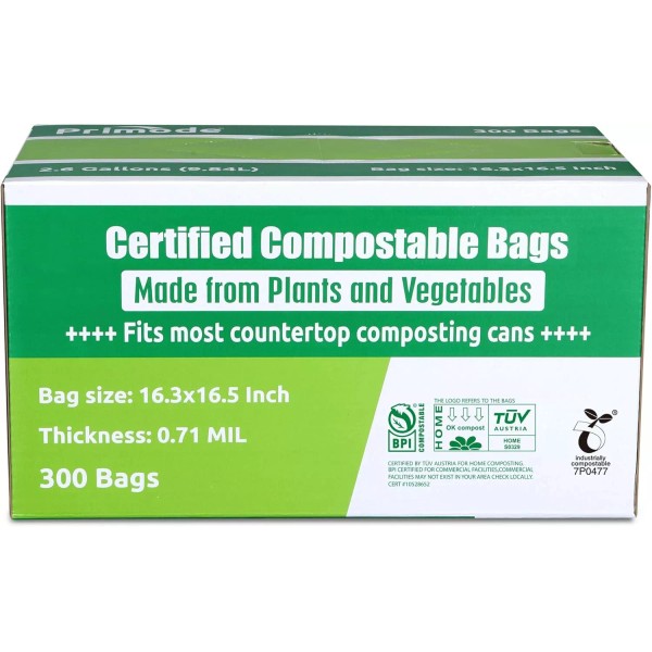 - 2.6 GALLON SIZE: Each of our compost bags has a capacity of 2.6 gallons, Measures 16.3 x 16.5 inch Extra Thick 0.71 Mil pack of 300.