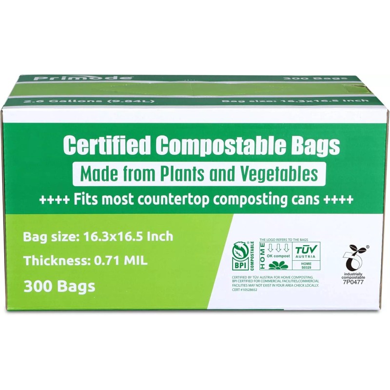 Primode Compostable Bags 2.6 Gallon Food Scraps Yard Waste Bags 300 Count Extra 0.71 Mil