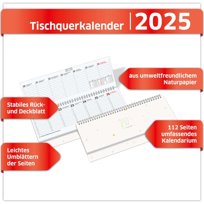 The PRIMUS PRINT desk calendar 2025 landscape weekly calendar is available in different motifs and as a single set as well as a value pack of 3. Order now and experience the perfect combination of functionality and design!