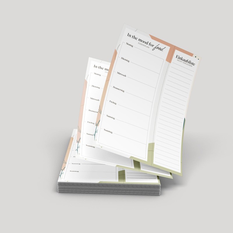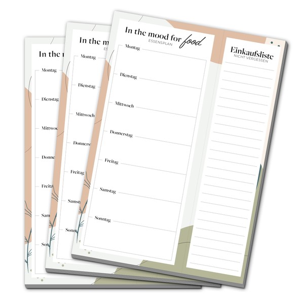 - Food planning: with our menu planner as a notepad, you can plan your meals individually every week. Each pad contains 50 pages, so you can plan 50 weeks with one pad.