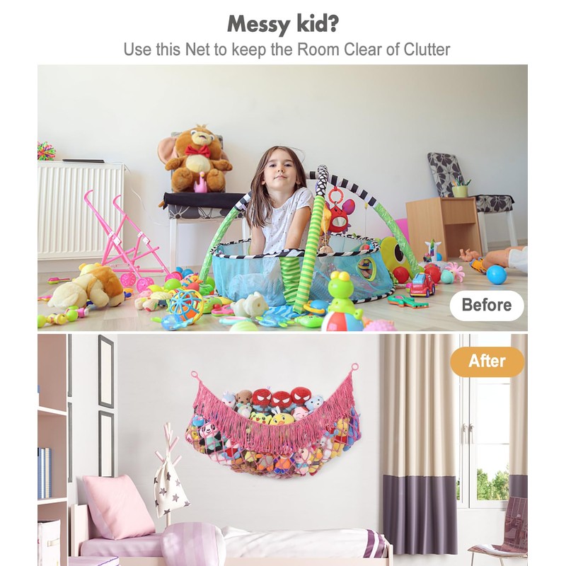 - [Messy kid?] Do you have stuffed animals all over the floor, all over the house? Time to take this unique designed stuffed animal hammockto keep your room clear of clutter! Just toss the squishmallow in and walk away.