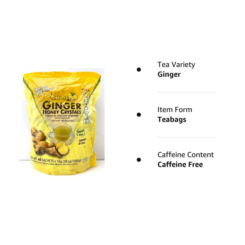 • - Each box of ginger honey crystals includes 60 individual sachets, providing a convenient and ample supply for daily use, whether at home, at work, or while traveling. Perfect for those who appreciate the health benefits and soothing properties of ginger, this bulk packaging ensures you never run out of your favorite drink.