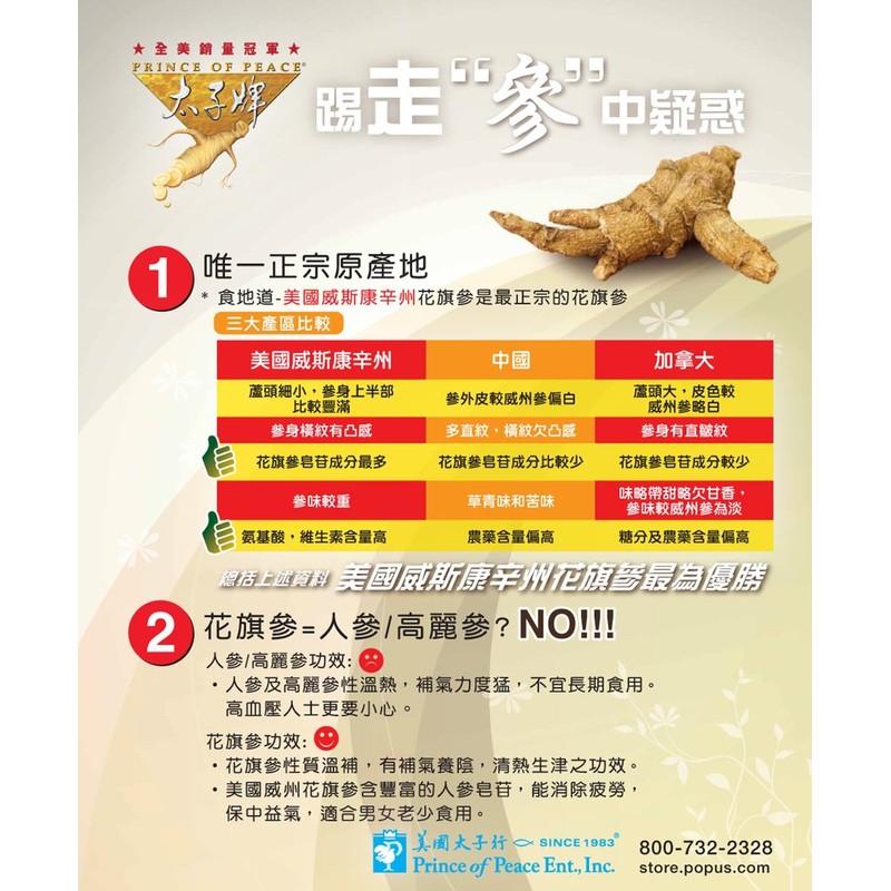 - No.1 selling brand in the U.S.A. for more than 20 years, Prince of Peace American Wisconsin Ginseng Root is the perfect gift to your friends and families!
