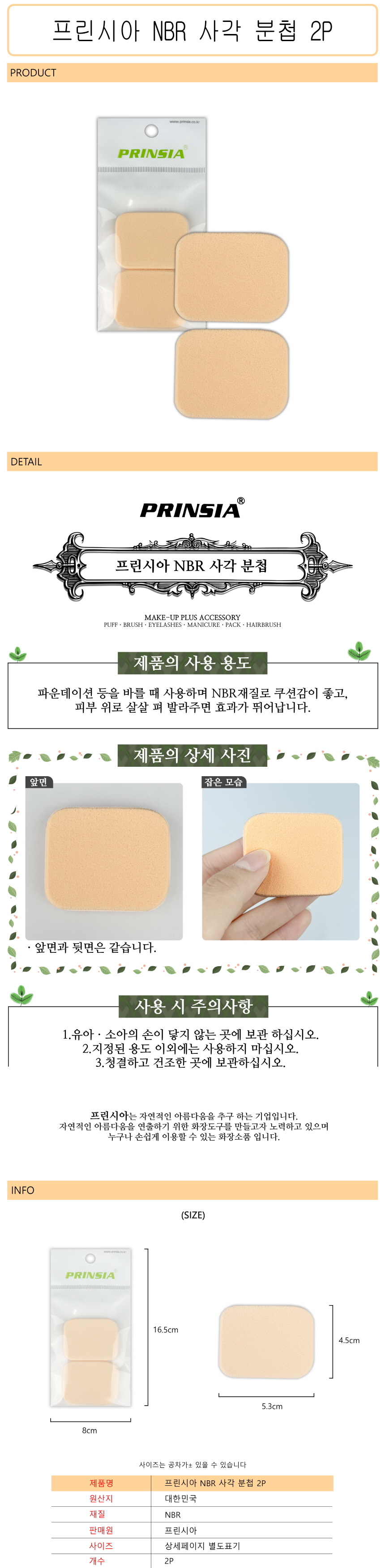 Princea NBR Square Makeup Puff 2-Pack D 10ea