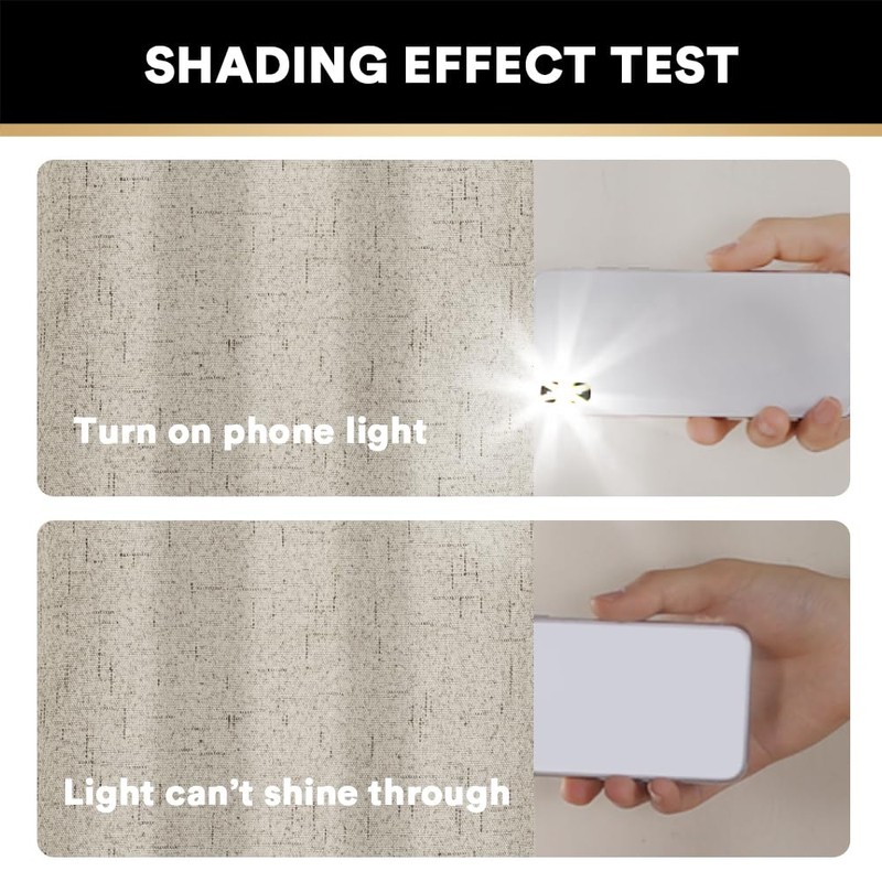 ELEGANT DECOR- These multi- functional curtains are made of durable blackout textured linen look fabric, feature with white backing for 100% blackout effect