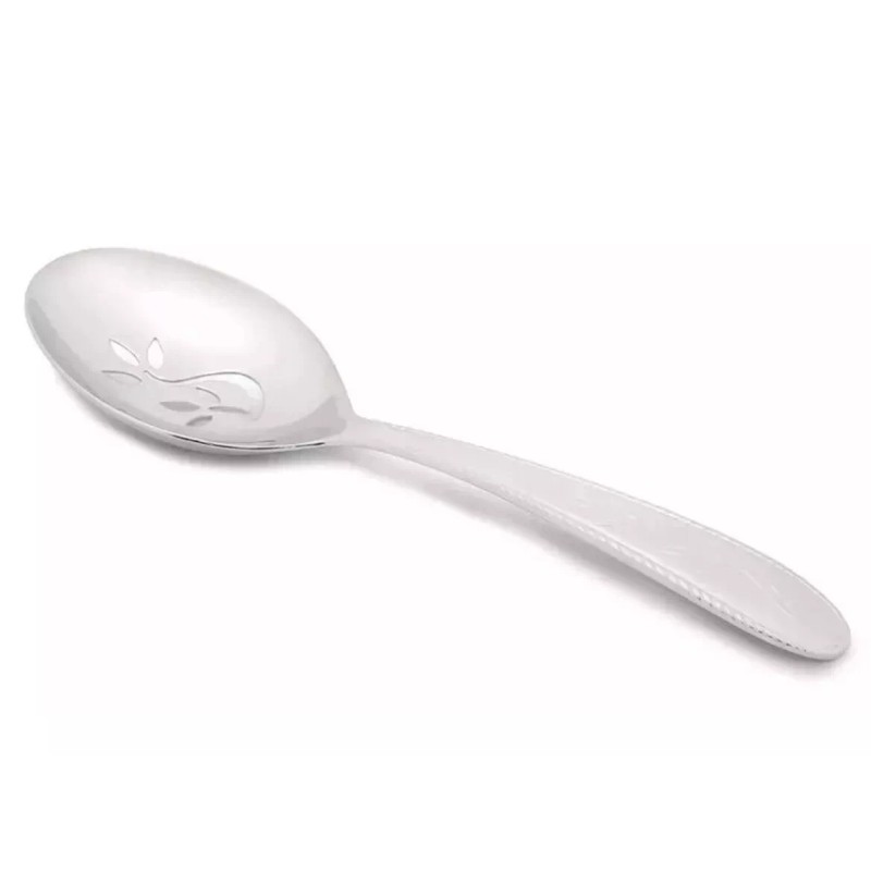 Add elegance to your dining table with this Princess House Amalia Slotted Spoon 3413. Crafted from high-quality stainless steel, this spoon is designed to last for years. The slotted design adds a touch of sophistication, making it perfect for serving during special occasions. The dishwasher-safe feature makes it easy to clean and maintain. The silver color and intricate Amalia style make it a great addition to your flatware collection. Made in China, this spoon is perfect for those who appreciate quality and style.