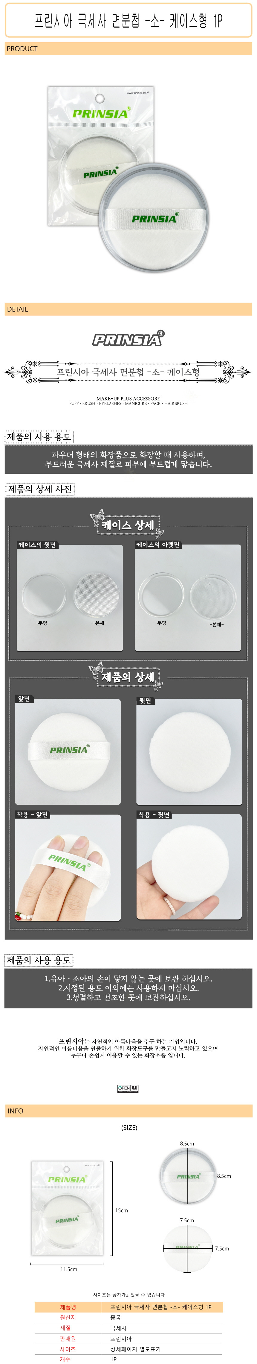 Princia microfiber cotton puff (small) case type 1P -O / 프린시아 극세사 면분첩 (소) 케이스형 1P -O