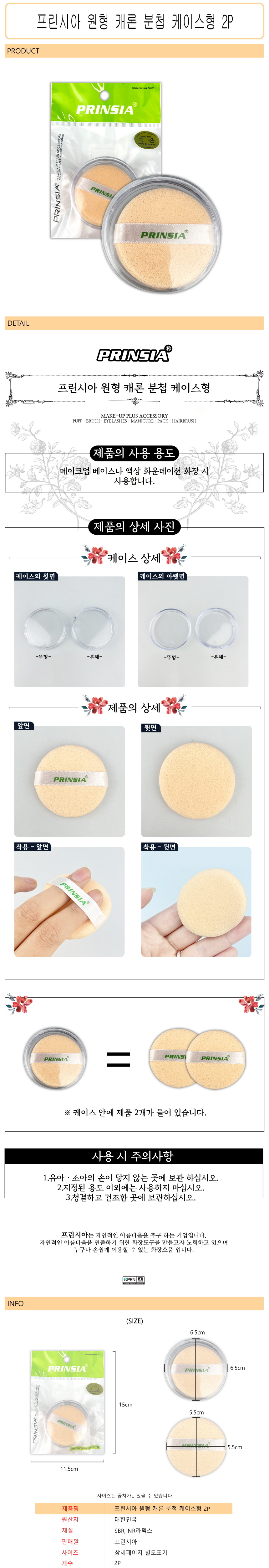 Prinsia Round Carron Powder Puff with Case, 2-Pack D 5ea