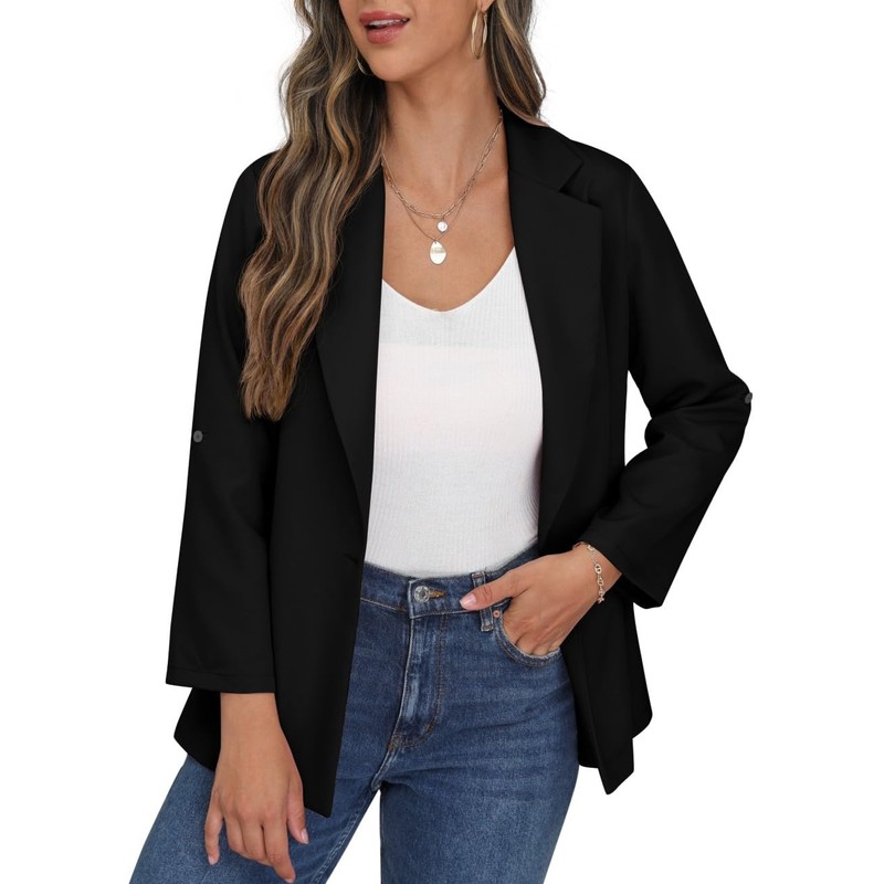 - THE EYE-CATCHING OF PARTY DRESS This women's blazer is good for spring and fall as the high quality lightweight fabric with lapel collar, open front, pockets, regular fit and long sleeves with roll tab option. This blazer makes you elegant and cute.