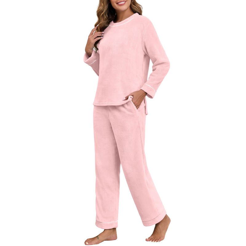 - Details: The fluffy pajama set includes a pullover top with a classic crew neckline and relaxed - fit sleep pants featuring an elastic waistband for a customizable fit. Additionally, the side pockets provide convenient storage for your small personal items like a phone or lip balm
