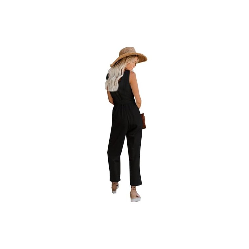 - Women's Summer Casual Jumpsuit V-Neck Button Down Sleeveless Rompers With Pockets