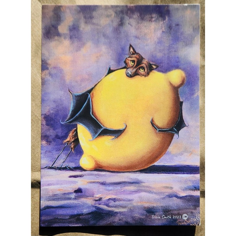Here is a 5" x 7" print of a  bat and it's beloved lemon, from an oil painting that I recently finished for a show.
