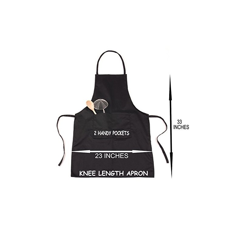 - ONE SIZE BBQ KITCHEN APRON:- The aprons measure 23 inches in width and 33 inches top to bottom. All our novelty aprons have with ties at the back and a wide neck loop and are knee length on the average height adult. There is a very useful double pocket on the front which is great for keeping cooking utensils to hand